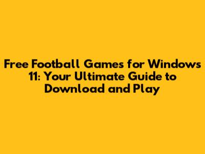 Free Football Games For Windows 11: Download & Play Now!