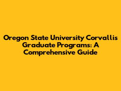 Oregon State Grad Programs: A Comprehensive Guide